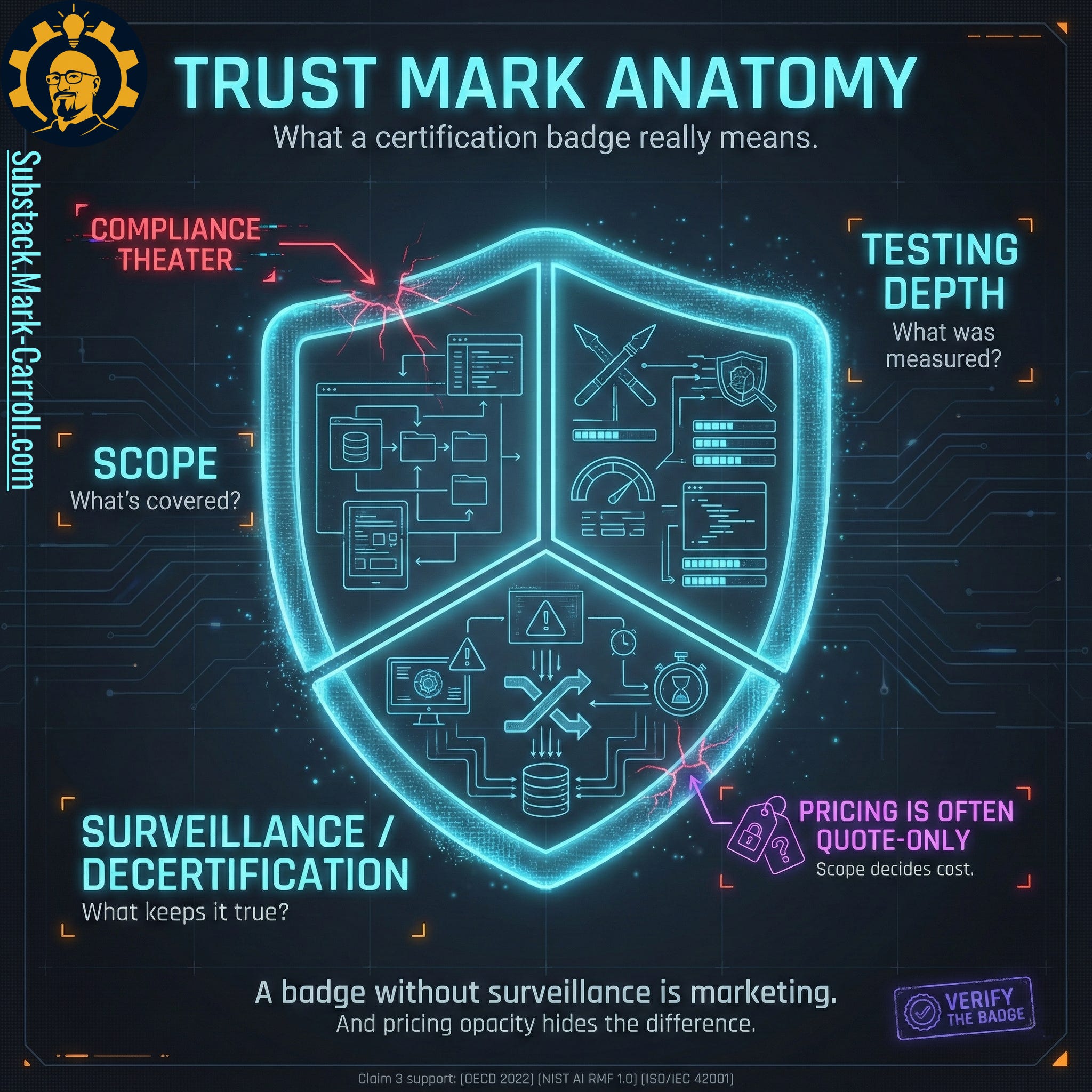 Trust marks can anchor assurance or enable theater, depending on scope, testing depth, and surveillance.