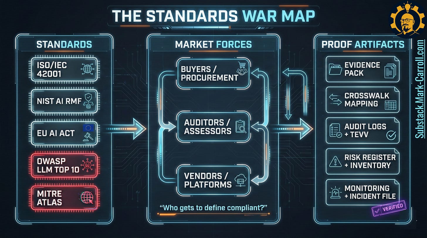 The Standards War is not a debate about the best framework. The Standards War is the fight over who gets to define the test, who gets to sell the certificate, and who gets left holding the bag when reality shows up.