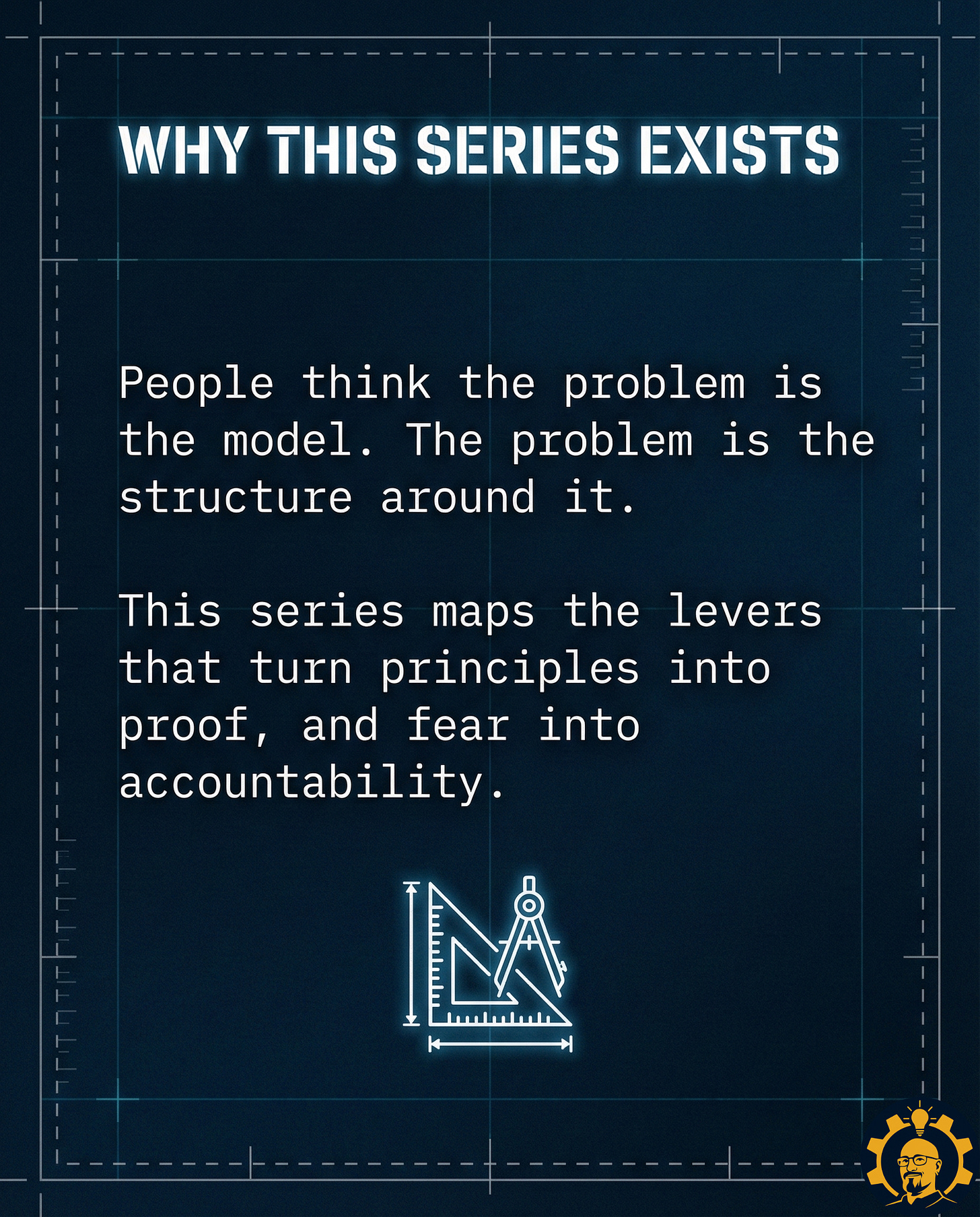 People think the problem is the model. The problem is the structure around it. This series maps the levers that turn principles into proof, and fear into accountability.
