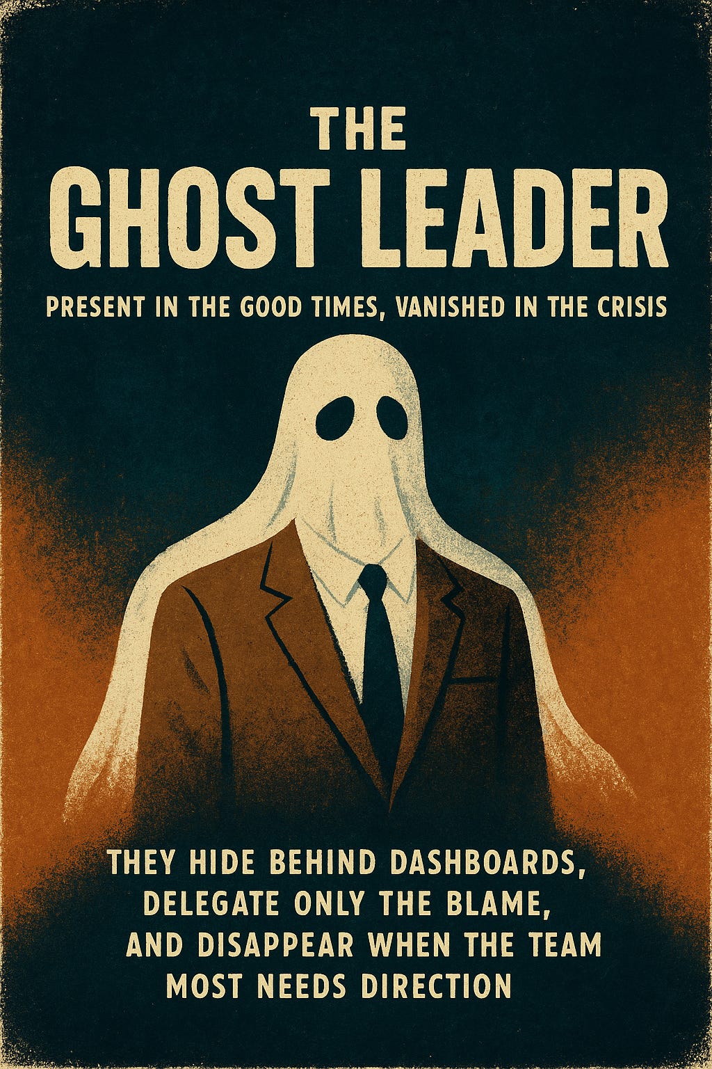 Present in the good times, vanished in the crisis. They hide behind dashboards, delegate only the blame, and disappear when the team most needs direction. Ghosts don’t lead—they haunt.