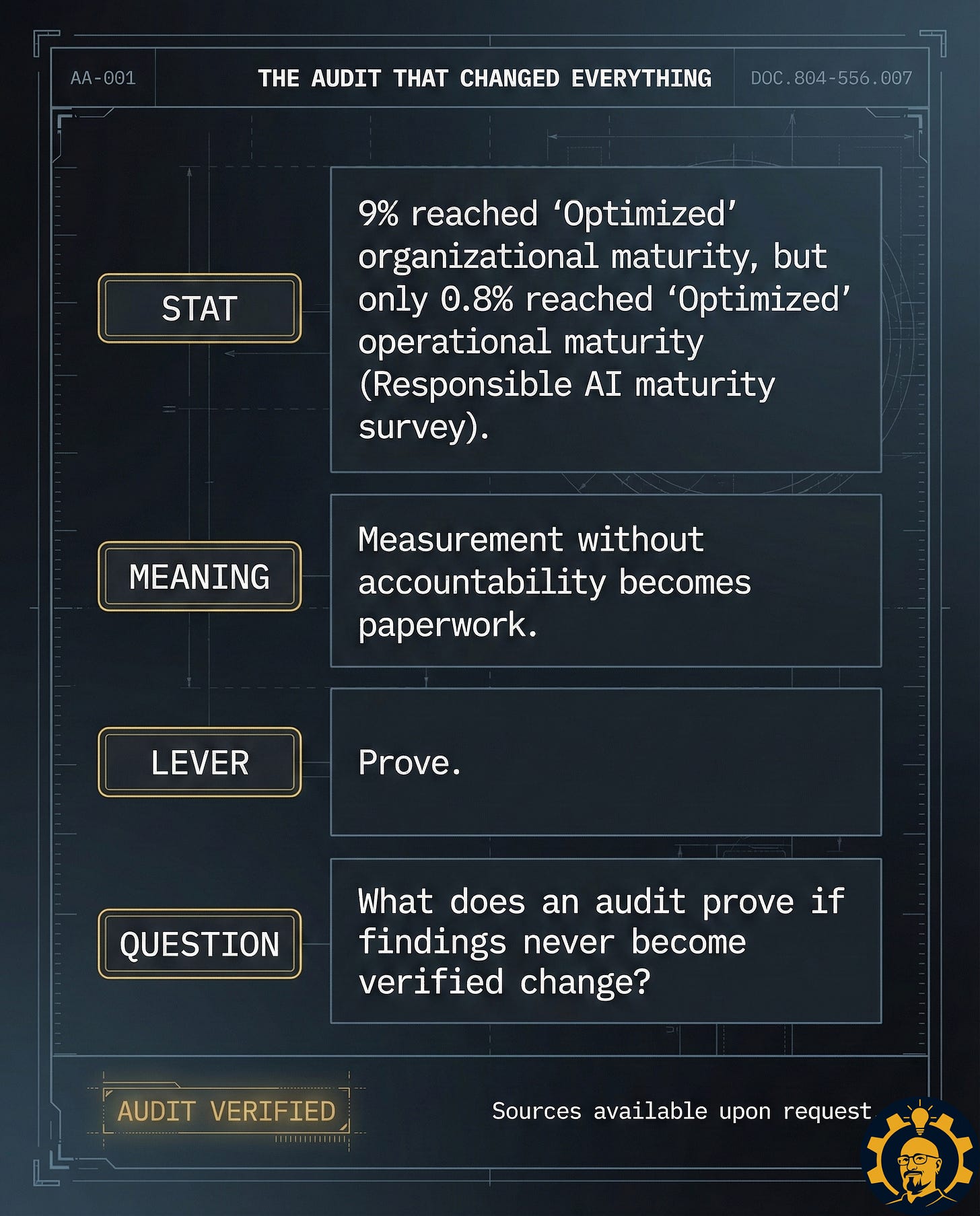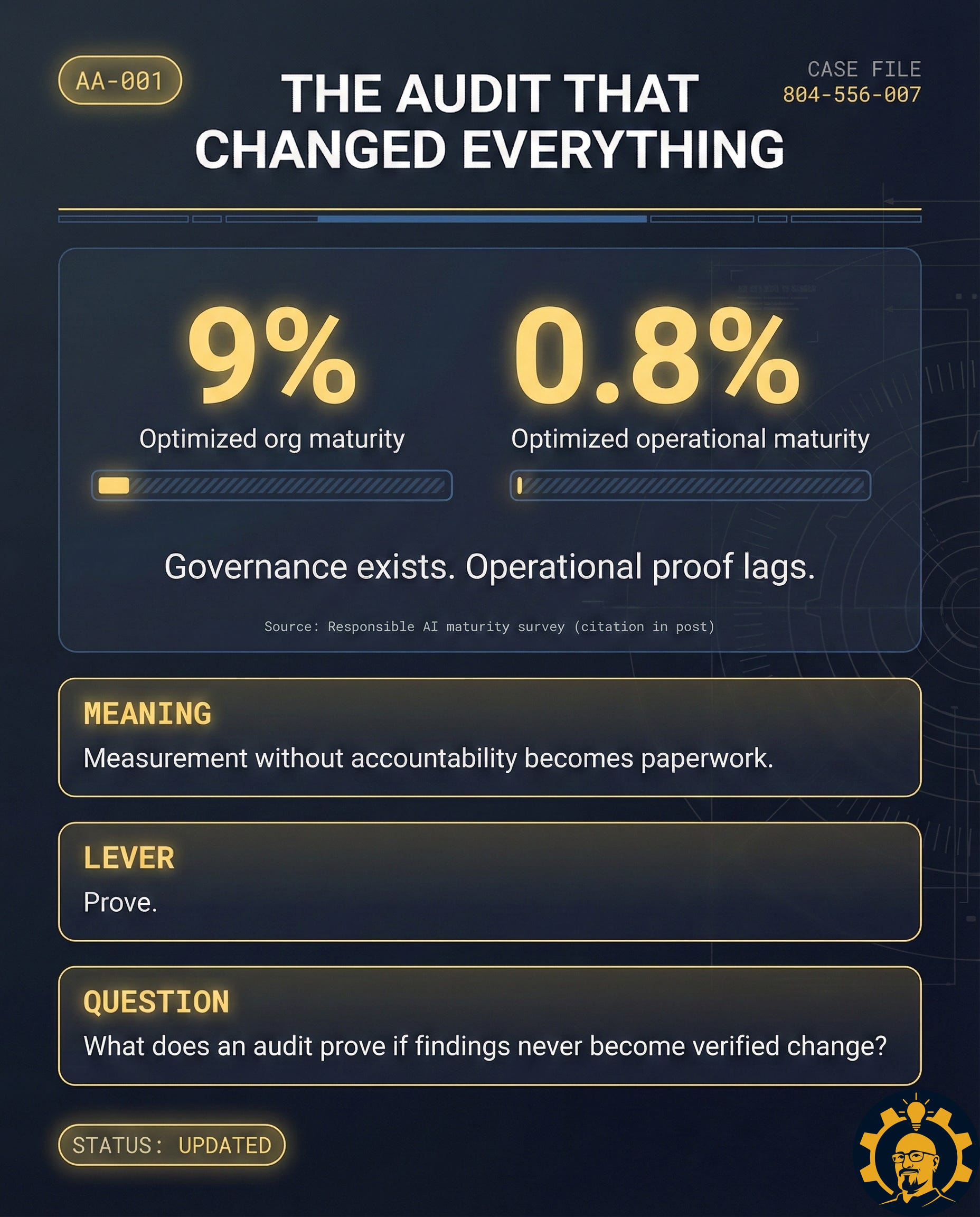A real audit is not a report. It is an intervention. It links evidence to an owner, an owner to a decision right, a decision right to a deadline, and a deadline to verification.