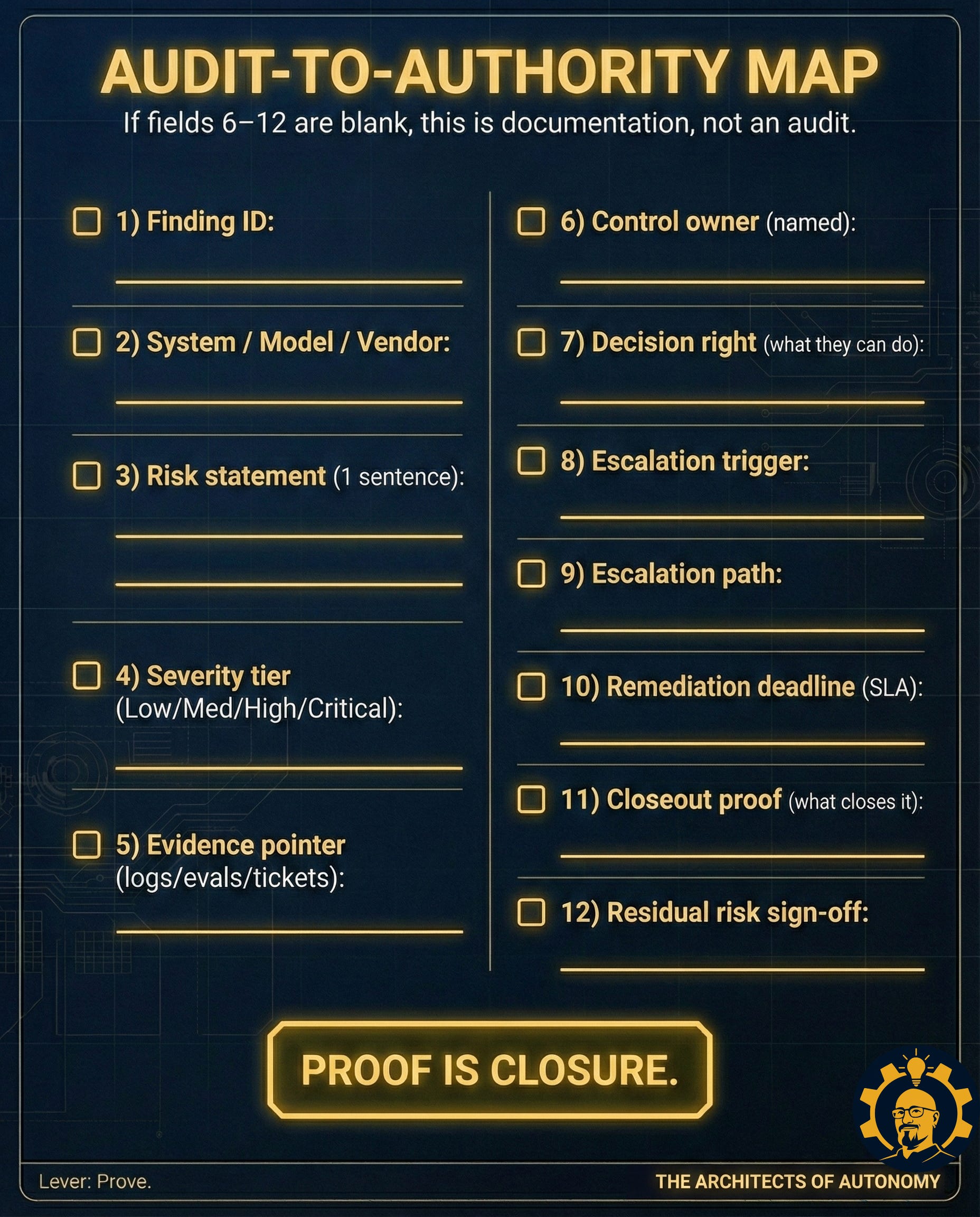 Stop “Audit Theater”! Download the 1-Page AI Audit Closeout Map and Assign Authority in Minutes: