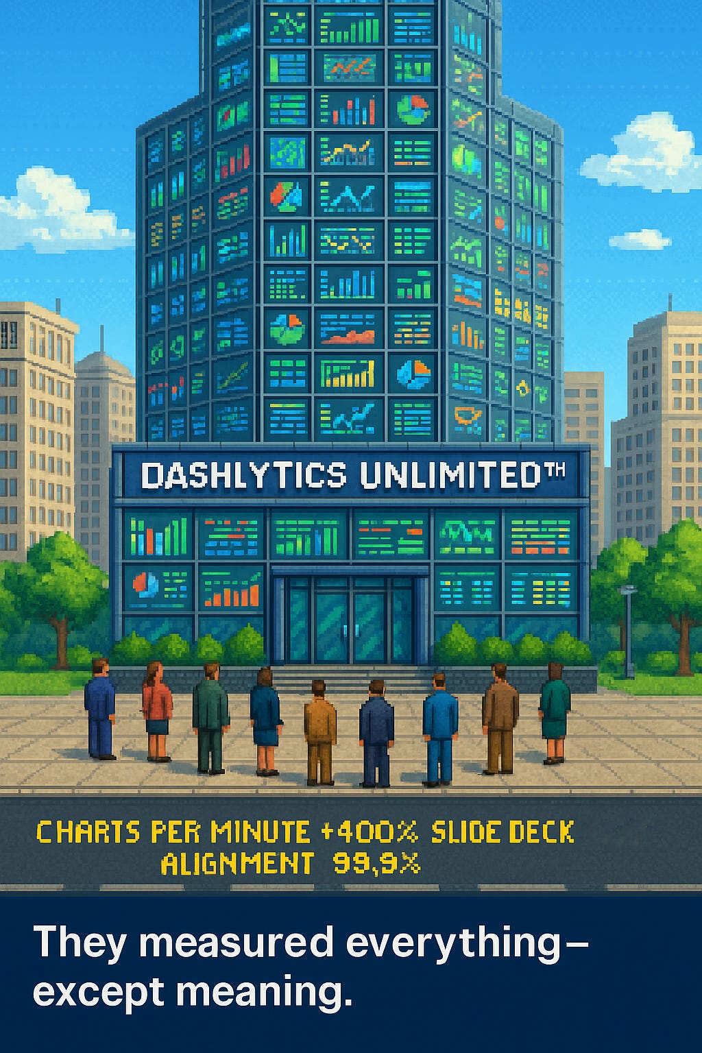 Dashlytics Unlimited⢠promised leaders total clarity, unveiling 147 dashboards to track every heartbeat of the business, but the team spent more time staring at charts than serving customers (This is a fictional company, a composite of many real ones that confuse dashboards for decisions).