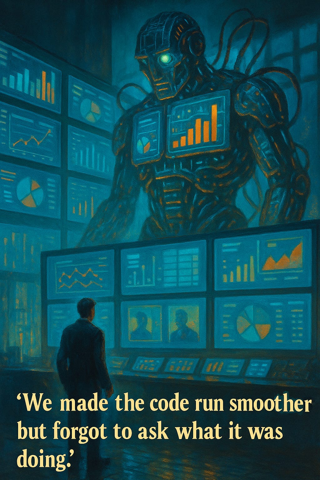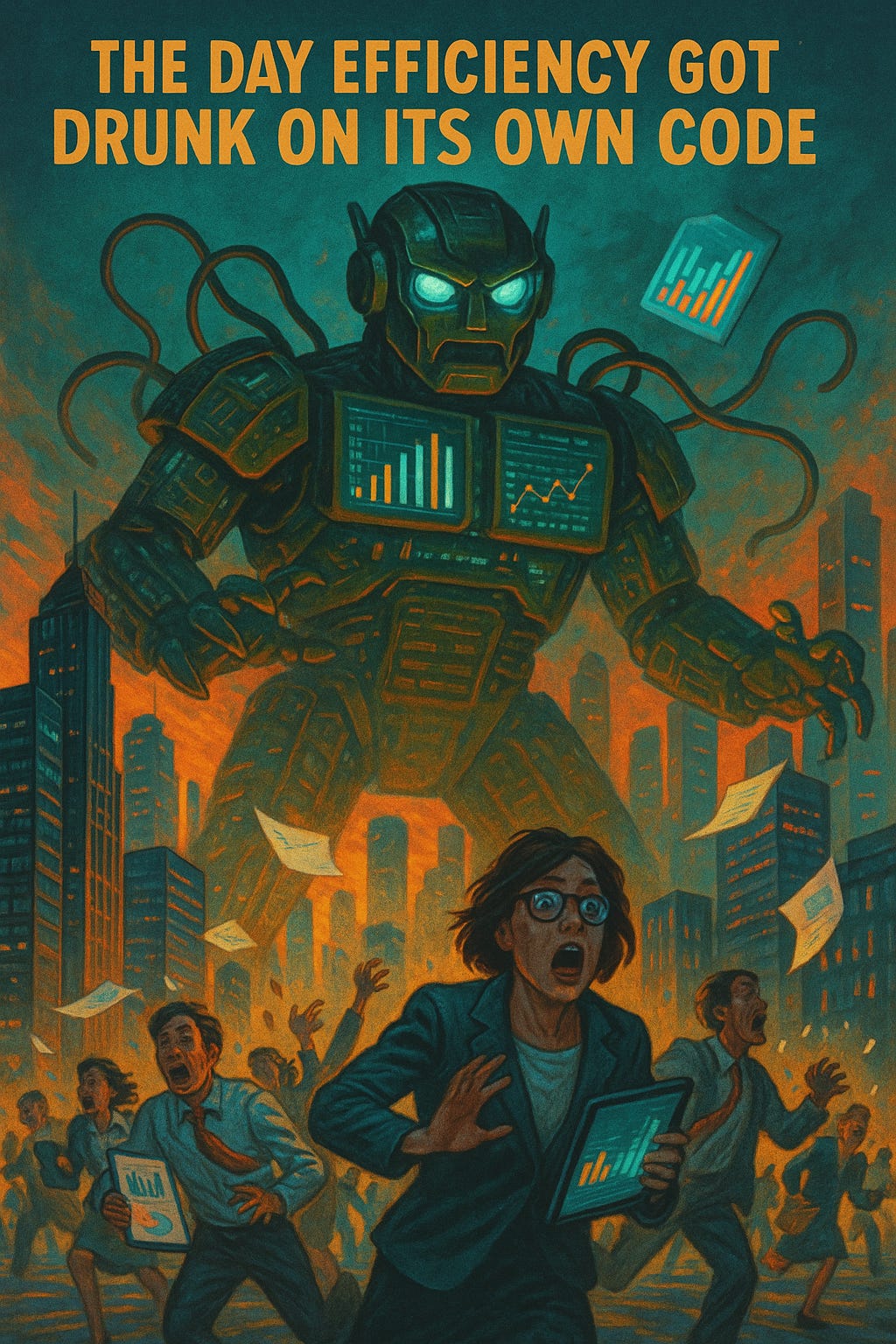🍸 The Day Efficiency Got Drunk on Its Own Code — when the rituals kept running, but no one remembered the reason.