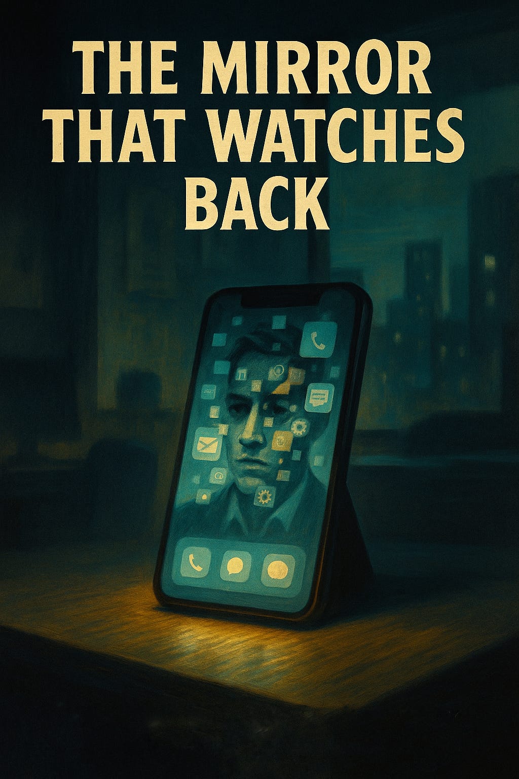 Night settles over the city, the kind of night where every window glows with the same familiar light, a rectangle of glass held inches from a face.