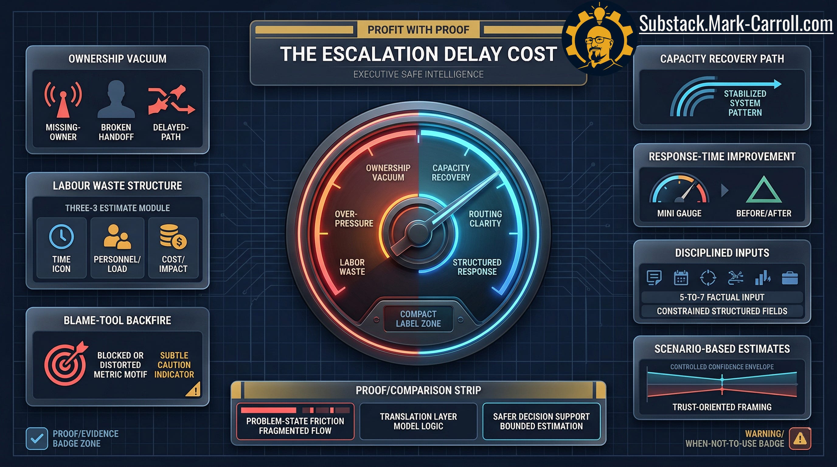 Those are not vanity questions. Those are operating questions. And they correspond almost directly to the four inputs of the structural model: delay interval, responders affected, loaded labor rate, and local contract exposure.