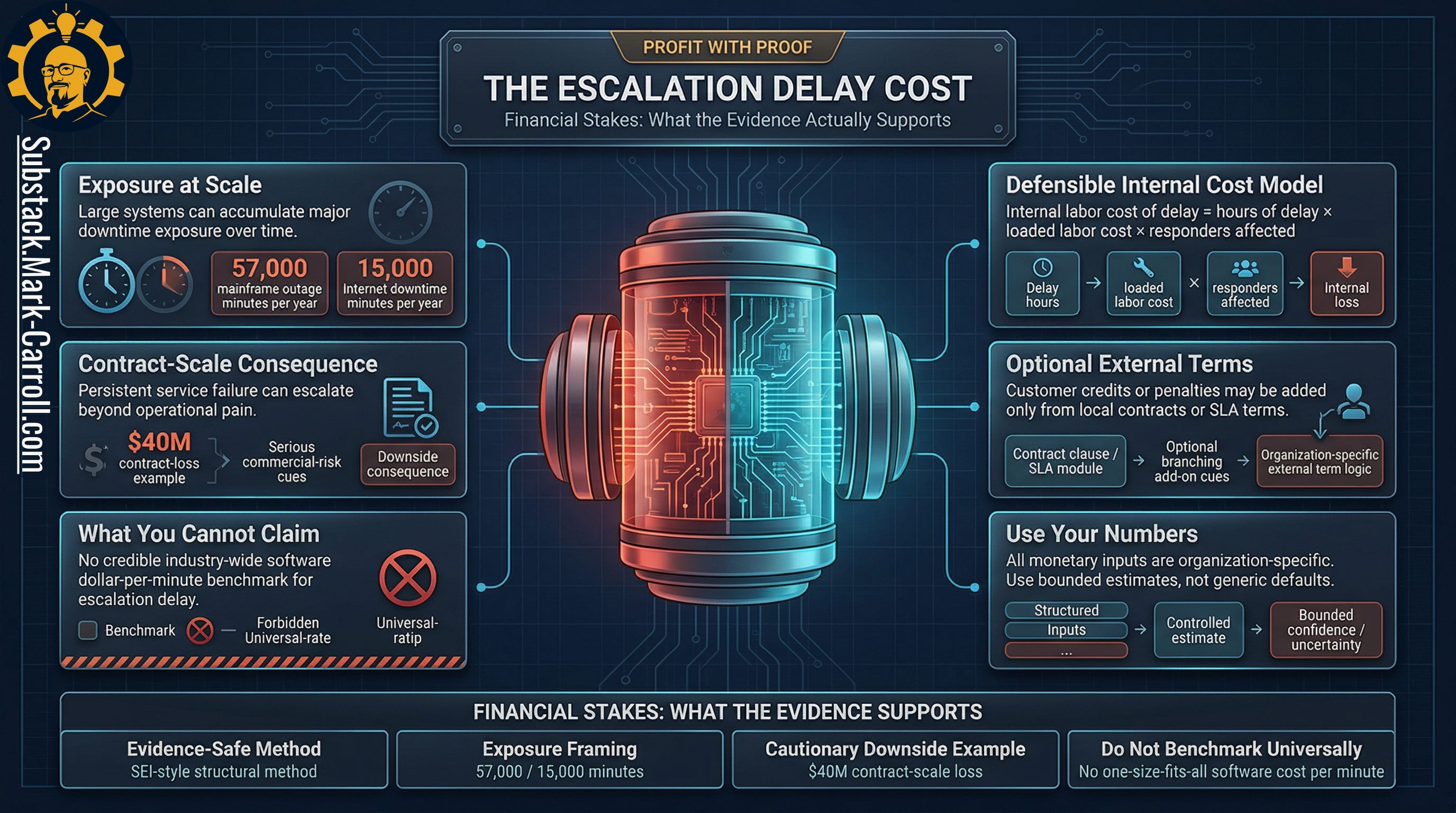 Does: give you a defensible way to estimate your own escalation delay cost.